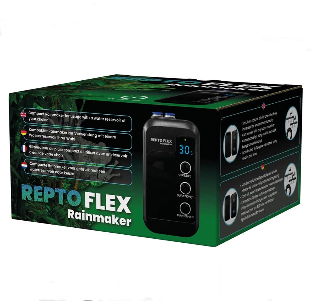 De Repto Flex Rainmaker is de ideale oplossing om in jouw terrarium een natuurlijk regen- en sproeiklimaat na te bootsen. Met dit geavanceerde systeem zorg je eenvoudig voor de juiste luchtvochtigheid, wat essentieel is voor reptielen, amfibieën en tropische planten.